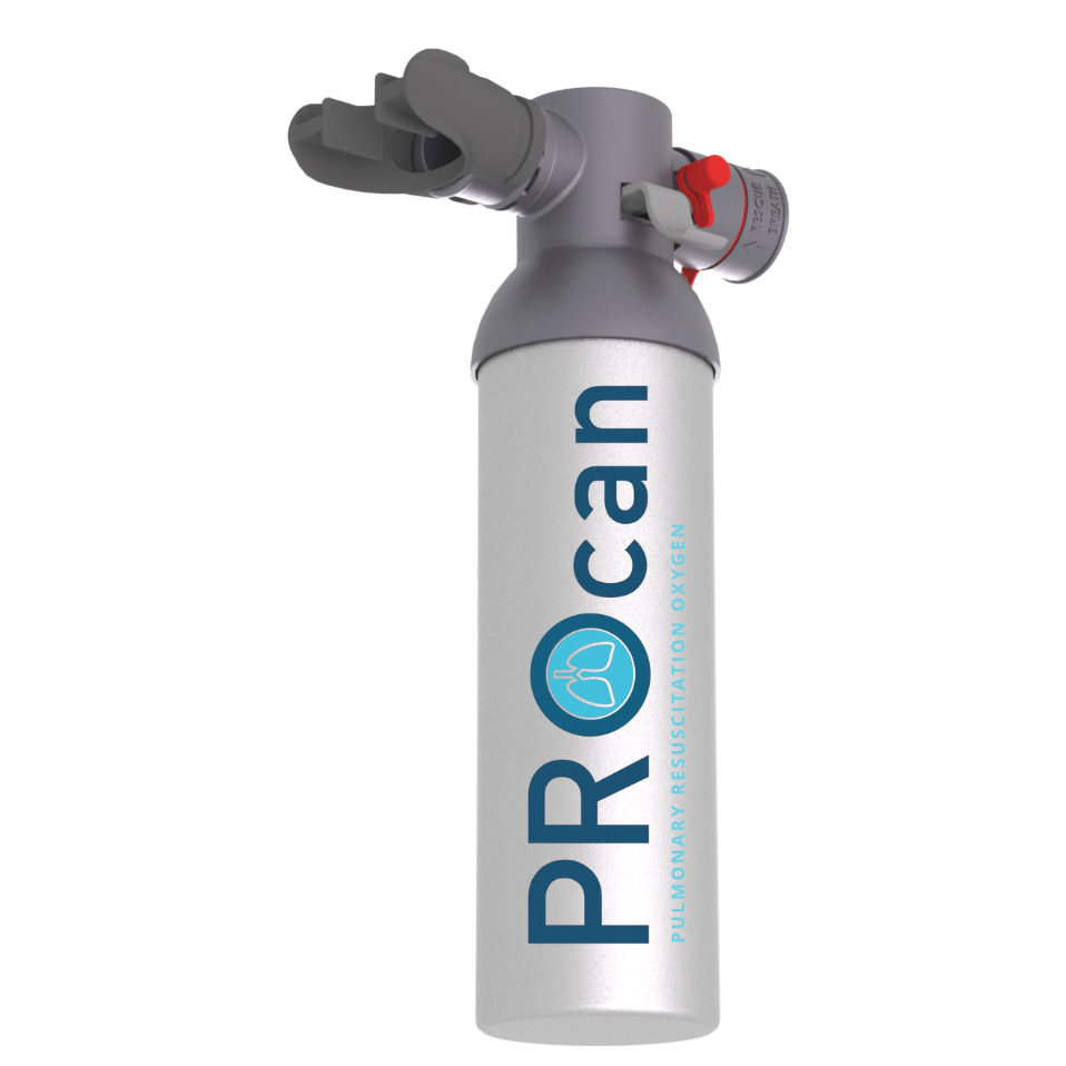 PROcan - Pulmonary Resuscitation Oxygen canister. PROcan is a patented, highly portable oxygen canister designed to enable any bystander to deliver high-quality, oxygen-rich rescue breaths during CPR.