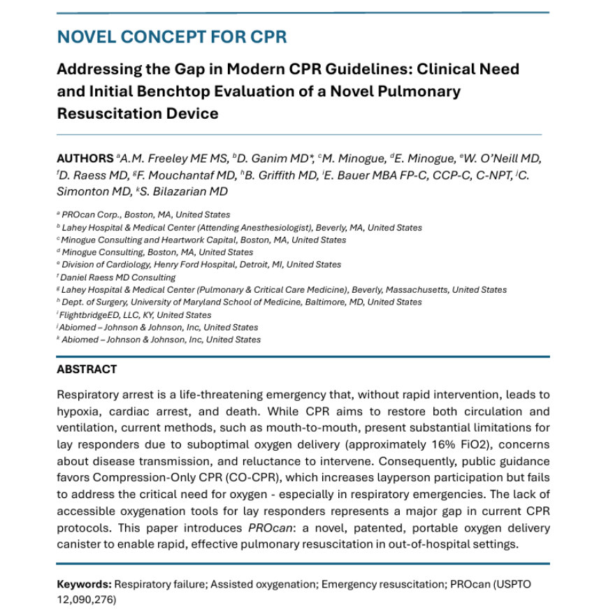 We’re actively publishing papers that identify the clinical need for PROcan and introduce the PROcan concept. Our multidisciplinary team—MDs, paramedics, academic clinicians, and engineers—is moving quickly toward testing and clinical validation studies. Interested in learning more or getting involved? Reach out now!